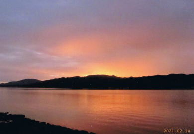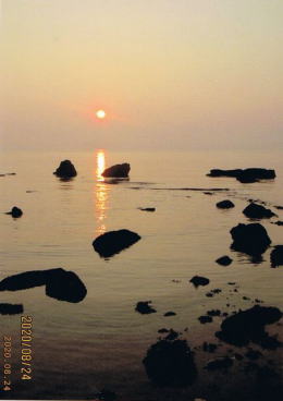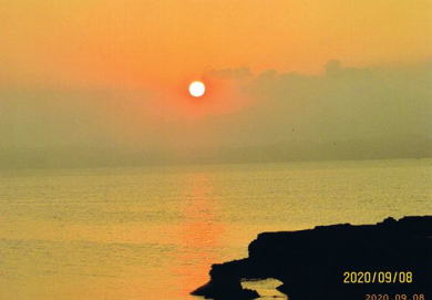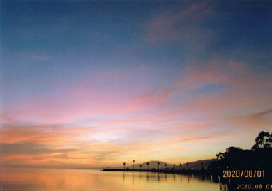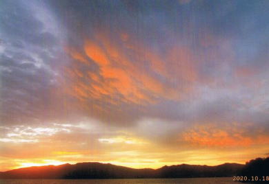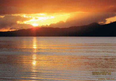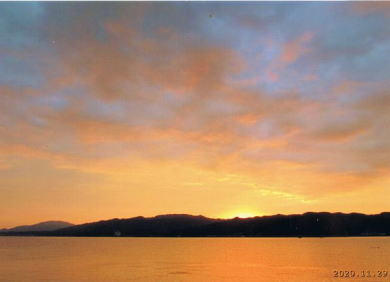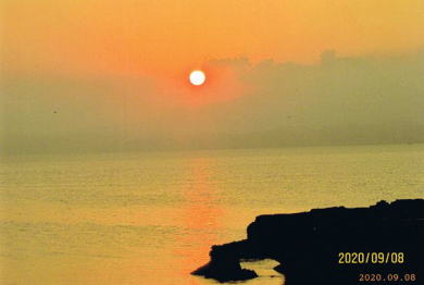 撮影場所:本渡茂木根/海岸の朝日と朝焼の雲 撮影日時:2020年